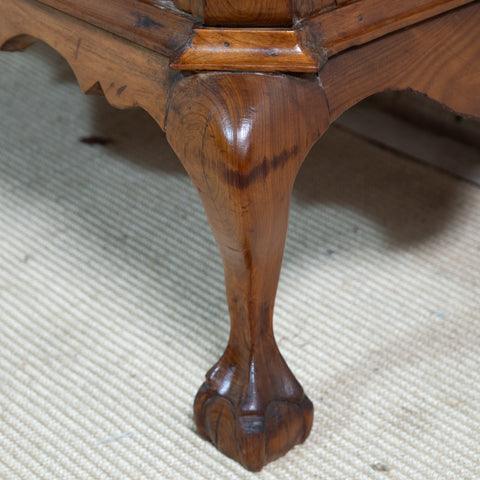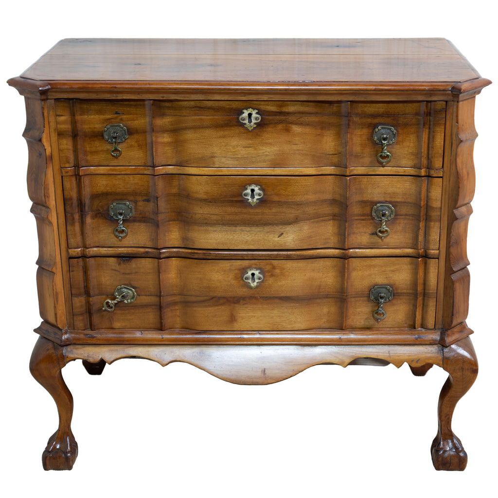 Thumb moulded top edge, scalloped shaped side edges and drawers, original locks and fittings, and ends on cabriole shaped legs with hand carved ball and claw front legs.