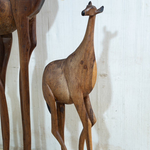 Pair of Giraffe Wooden Statues