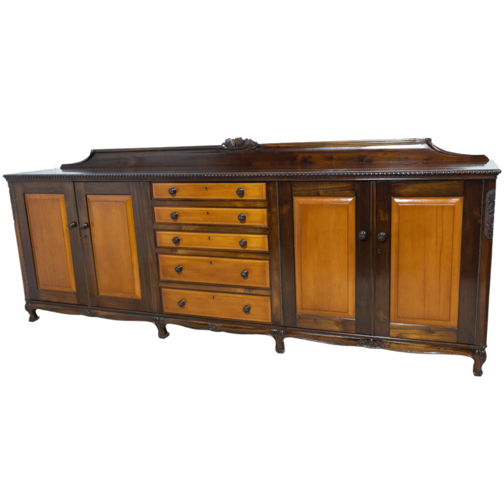 Long Antique Solid Stinkwood & Yellowwood Sideboard