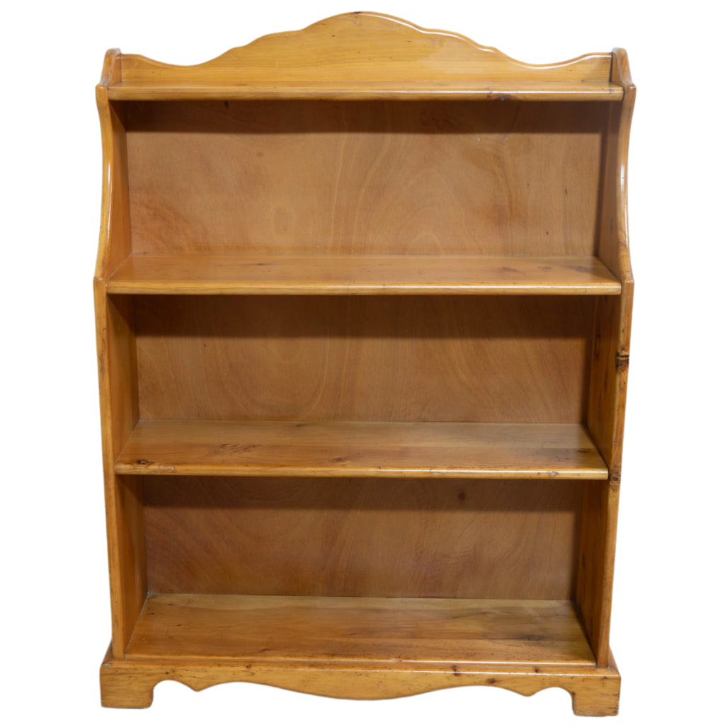Shaped top, 3 shelves and ends on a shaped fixed plinth base.