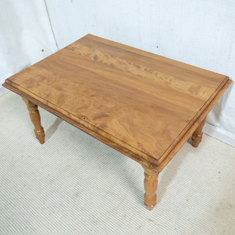 Rich patina, double moulded top edge, round tapered tulip, ball & ring turned legs.